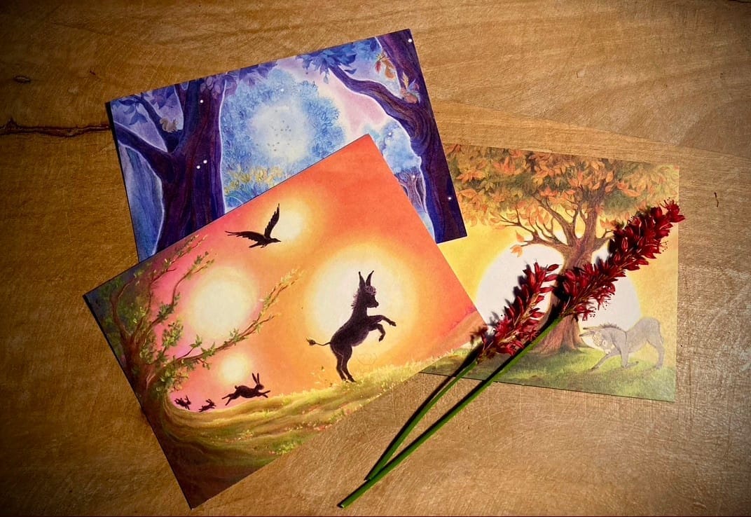 Je krijgt van ons een set van 5 postkaarten cadeau (t.w.v. 10 euro), met prachtige illustraties uit het boek.